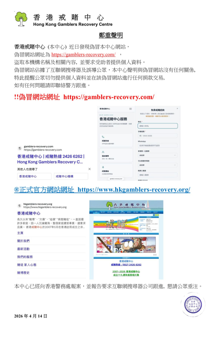 2007-2026 香港戒賭中心